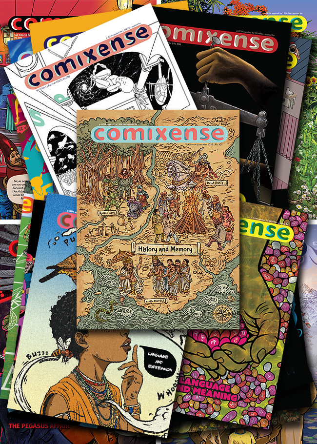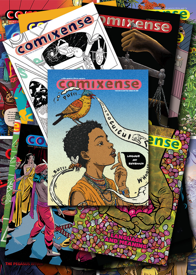 Comixense is published by the Ektara Trust, and the options to buy individual issues or subscribe to the magazine are available on the Ektara Shop site. Please click on the link below to be taken there.
